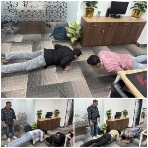 Charu, Rahul, and Anoop stepped up as hydration heroes and made cold coffee for everyone. Yes, actual cold coffee. Served with effort and love. Fitness outside, caffeine inside. Balanced lifestyle, you see.
