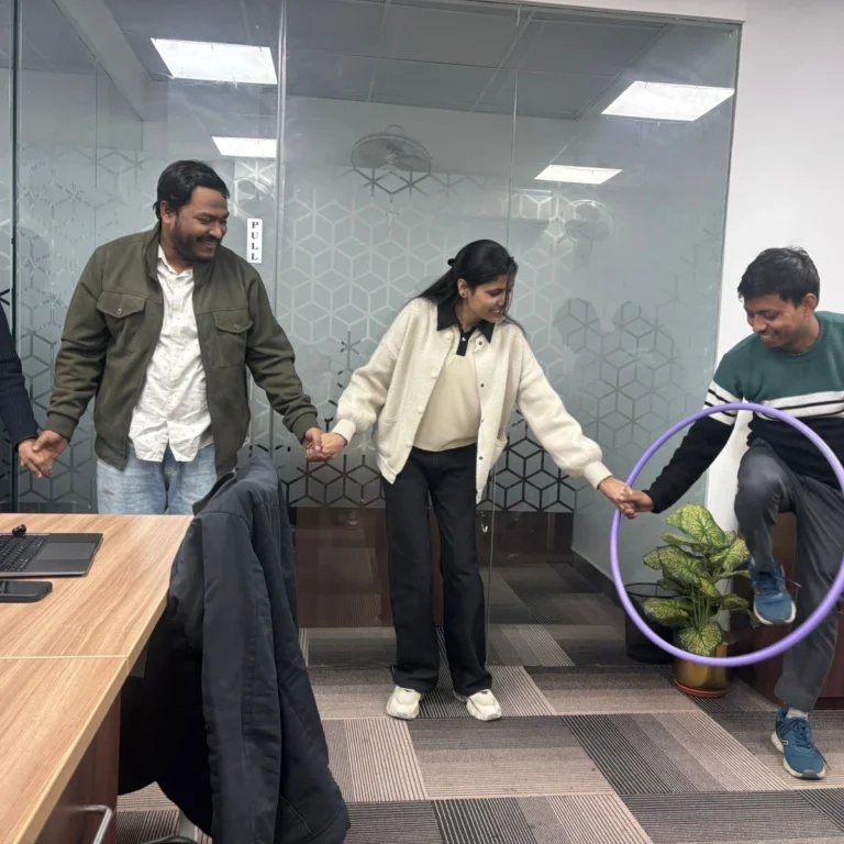 The ring moved from one person to another using only body movement, flexibility, and a lot of laughter. Strategies were discussed, re-discussed, and then completely forgotten mid-game. After plenty of twists, turns, and hilarious attempts, Team Salman, Shabnam, Mohit, Anjali, and Naresh smoothly made it through and won the round like absolute champs. 🏆